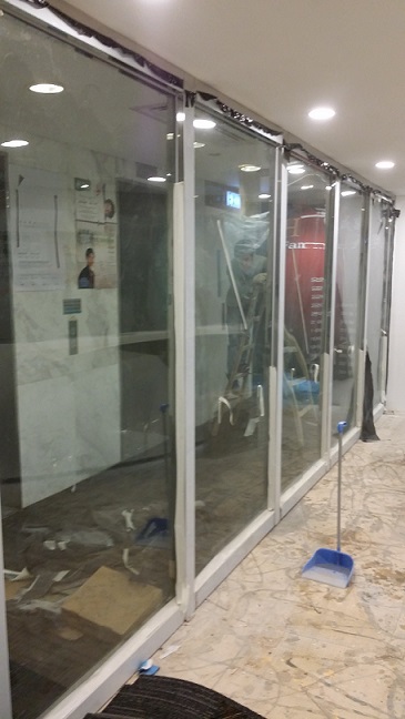根據香港消防處及屋宇署條例,寫字樓玻璃門最小具備一小時防火時效,以保障火警逃生時之人生安全。